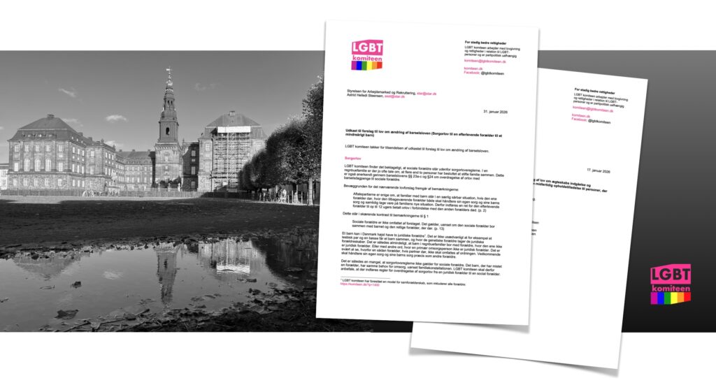 LGBT komiteen har indgivet høringssvar til forslag til lov om ændring af barselsloven, et forslag, der vedrører sorgorlov til en efterlevende forælder til et mindreårigt barn. Forslaget tager udgangspunkt i, at familier med børn står i en særlig sårbar situation, hvis den ene forælder dør, hvor den tilbageværende forælder både skal håndtere sin egen sorg og sine børns sorg og samtidig tage vare på familiens nye situation. Derfor indføres en ret for den efterlevende forælder til op til 12 ugers betalt orlov i forbindelse med den anden forælders død.